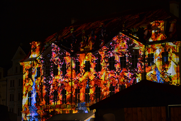 Dál jsme mířili k poslední zastávce na Staromáku, vchod na něj z Kaprovky byl ale úplně ucpaný, takže jsme to obešli přes Malé náměstí a zkoukli ještě další videomapping, který ale taky nezanechal žádný wow efekt.