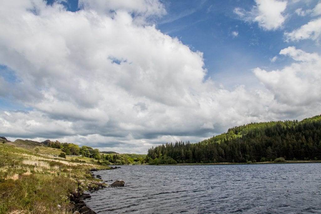 Bylo už šest hodin, ale počasí bylo naprosto nádherné a nám se ještě nechtělo vracet se zpátky. A tak jsme se rozhodli, že se mrkneme k ještě jednomu jezeru, ještě jižněji. Nastavili jsme tedy do Sygicu trasu do Beddgelertu a vyrazili vyhlídkovou cestou mezi pastvinami k jezeru Llyn Dinas.